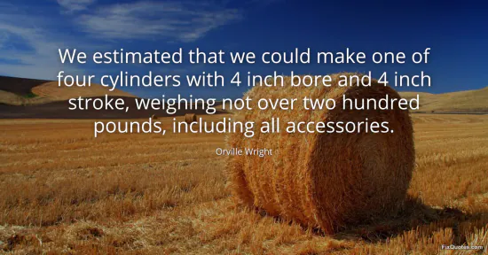 Wright, Orville. "We estimated that we could make one of four cylinders with 4 inch bore and 4 inch stroke, weighing not over two hundred pounds, including all accessories." FixQuotes. January 18, 2026. https://fixquotes.com/quotes/we-estimated-that-we-could-make-one-of-four-3249/.
