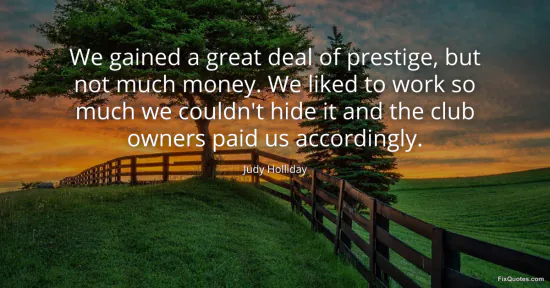 Holliday, Judy. (2026, January 17). We gained a great deal of prestige, but not much money. We liked to work so much we couldn't hide it and the club owners paid us accordingly. FixQuotes. https://fixquotes.com/quotes/we-gained-a-great-deal-of-prestige-but-not-much-61621/