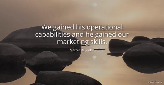 Reynolds, Mercer. (2026, January 15). We gained his operational capabilities and he gained our marketing skills. FixQuotes. https://fixquotes.com/quotes/we-gained-his-operational-capabilities-and-he-170887/