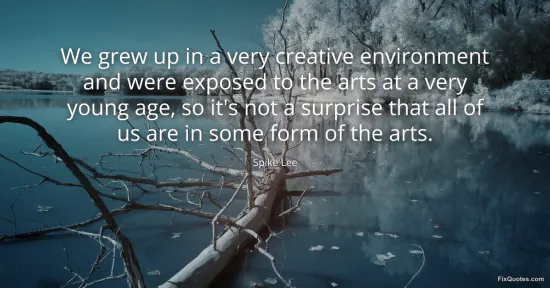 Lee, Spike. (2026, January 18). We grew up in a very creative environment and were exposed to the arts at a very young age, so it's not a surprise that all of us are in some form of the arts. FixQuotes. https://fixquotes.com/quotes/we-grew-up-in-a-very-creative-environment-and-13366/