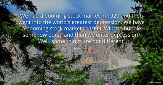 Sachs, Jeffrey. (2026, January 18). We had a booming stock market in 1929 and then went into the world's greatest depression. We have a booming stock market in 1999. Will the bubble somehow burst, and then we enter depression? Well, some things are not different. FixQuotes. https://fixquotes.com/quotes/we-had-a-booming-stock-market-in-1929-and-then-21643/