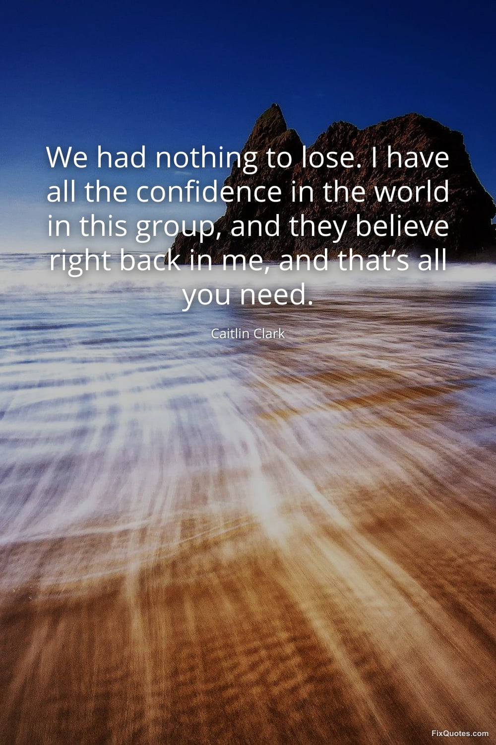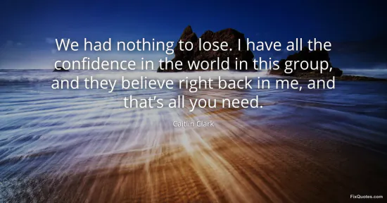 Clark, Caitlin. "We had nothing to lose. I have all the confidence in the world in this group, and they believe right back in me, and that’s all you need." FixQuotes. March 19, 2026. https://fixquotes.com/quotes/we-had-nothing-to-lose-i-have-all-the-confidence-186159/.