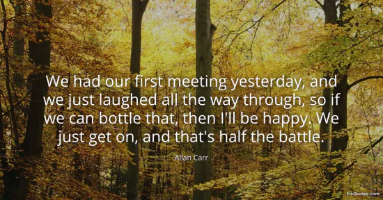 Carr, Allan. (2026, January 17). We had our first meeting yesterday, and we just laughed all the way through, so if we can bottle that, then I'll be happy. We just get on, and that's half the battle. FixQuotes. https://fixquotes.com/quotes/we-had-our-first-meeting-yesterday-and-we-just-57303/