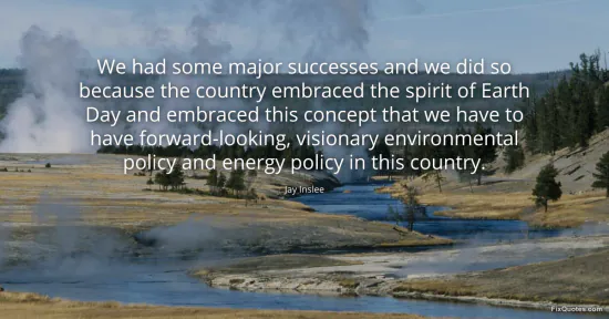 Inslee, Jay. "We had some major successes and we did so because the country embraced the spirit of Earth Day and embraced this concept that we have to have forward-looking, visionary environmental policy and energy policy in this country." FixQuotes. January 16, 2026. https://fixquotes.com/quotes/we-had-some-major-successes-and-we-did-so-because-100387/.