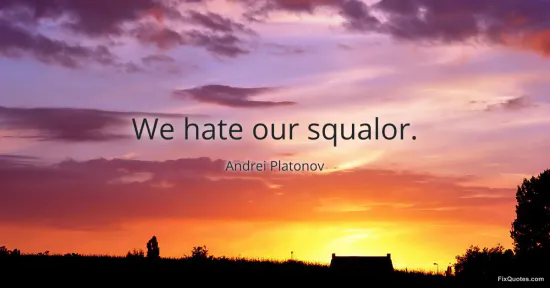A four-word confession that doubles as an indictment. Platonov’s "We hate our squalor" lands with the bleak compression of someone who has watched ideals curdle into daily grime. The "we" matters: it’s collective, implicating both the sufferers and the system that trained them to internalize failure as a shared moral mood. Hate isn’t directed upward, at the planners or the bosses, but inward, at the conditions of life as lived - and, by extension, at the selves forced to live them.