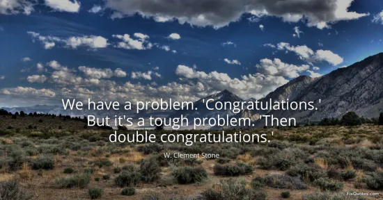 Stone, W. Clement. (2026, January 17). We have a problem. 'Congratulations.' But it's a tough problem. 'Then double congratulations.'. FixQuotes. https://fixquotes.com/quotes/we-have-a-problem-congratulations-but-its-a-tough-29427/