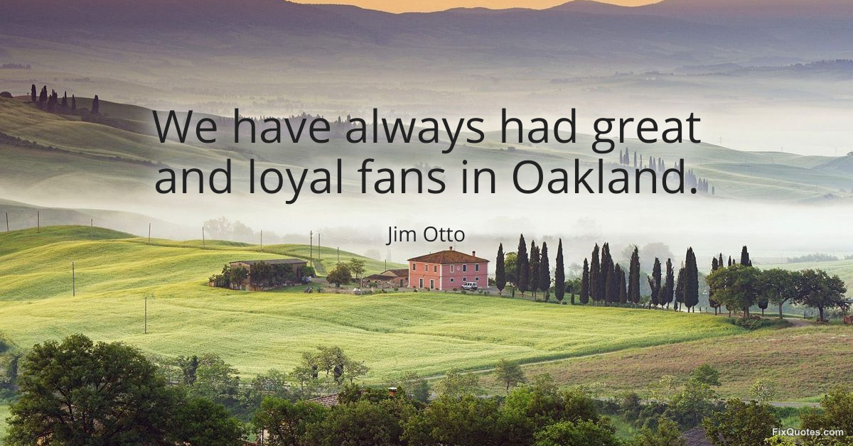 Otto, Jim. "We have always had great and loyal fans in Oakland." FixQuotes. January 15, 2026. https://fixquotes.com/quotes/we-have-always-had-great-and-loyal-fans-in-oakland-167754/.