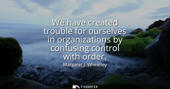 "We have created trouble for ourselves in organizations by confusing control with order"