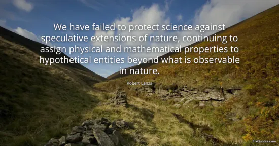 Lanza, Robert. (2026, January 17). We have failed to protect science against speculative extensions of nature, continuing to assign physical and mathematical properties to hypothetical entities beyond what is observable in nature. FixQuotes. https://fixquotes.com/quotes/we-have-failed-to-protect-science-against-64668/