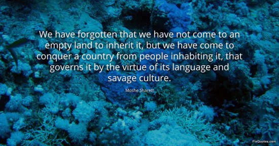 "We have forgotten that we have not come to an empty land to inherit it, but we have come to conquer a country from people inhabiting it, that governs it by the virtue of its language and savage culture"