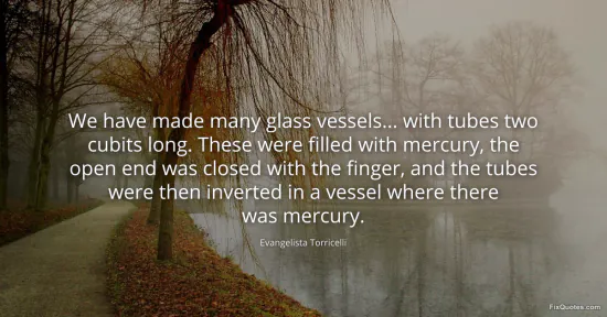 Torricelli, Evangelista. (2026, January 15). We have made many glass vessels... with tubes two cubits long. These were filled with mercury, the open end was closed with the finger, and the tubes were then inverted in a vessel where there was mercury. FixQuotes. https://fixquotes.com/quotes/we-have-made-many-glass-vessels-with-tubes-two-170682/