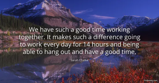 Chalke, Sarah. (2026, January 16). We have such a good time working together. It makes such a difference going to work every day for 14 hours and being able to hang out and have a good time. FixQuotes. https://fixquotes.com/quotes/we-have-such-a-good-time-working-together-it-106630/