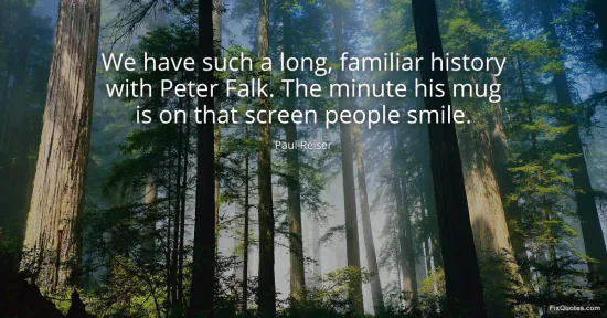 Reiser, Paul. (2026, January 15). We have such a long, familiar history with Peter Falk. The minute his mug is on that screen people smile. FixQuotes. https://fixquotes.com/quotes/we-have-such-a-long-familiar-history-with-peter-147394/