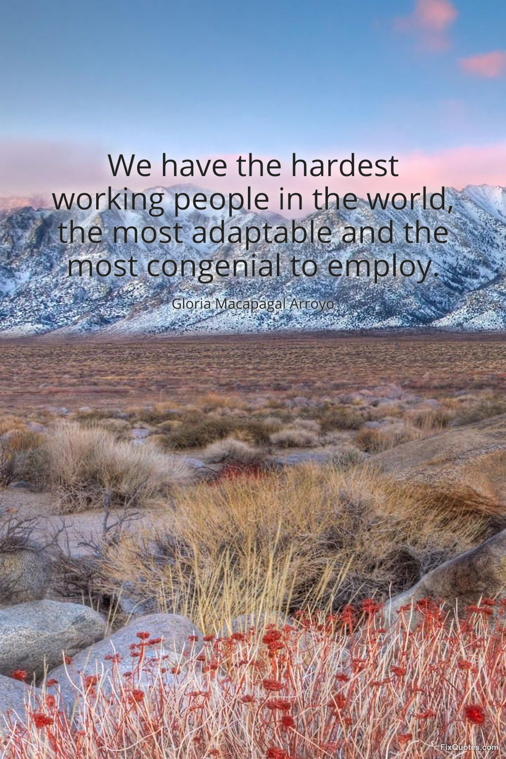 Arroyo, Gloria Macapagal. (2026, January 17). We have the hardest working people in the world, the most adaptable and the most congenial to employ. FixQuotes. https://fixquotes.com/quotes/we-have-the-hardest-working-people-in-the-world-74501/