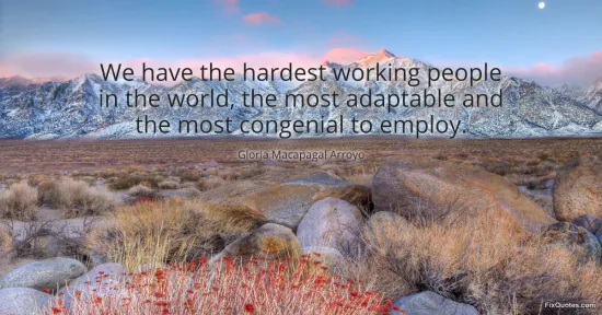 Arroyo, Gloria Macapagal. "We have the hardest working people in the world, the most adaptable and the most congenial to employ." FixQuotes. January 17, 2026. https://fixquotes.com/quotes/we-have-the-hardest-working-people-in-the-world-74501/.