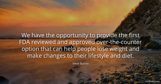 Burton, Steve. (2026, January 15). We have the opportunity to provide the first FDA reviewed and approved over-the-counter option that can help people lose weight and make changes to their lifestyle and diet. FixQuotes. https://fixquotes.com/quotes/we-have-the-opportunity-to-provide-the-first-fda-110521/