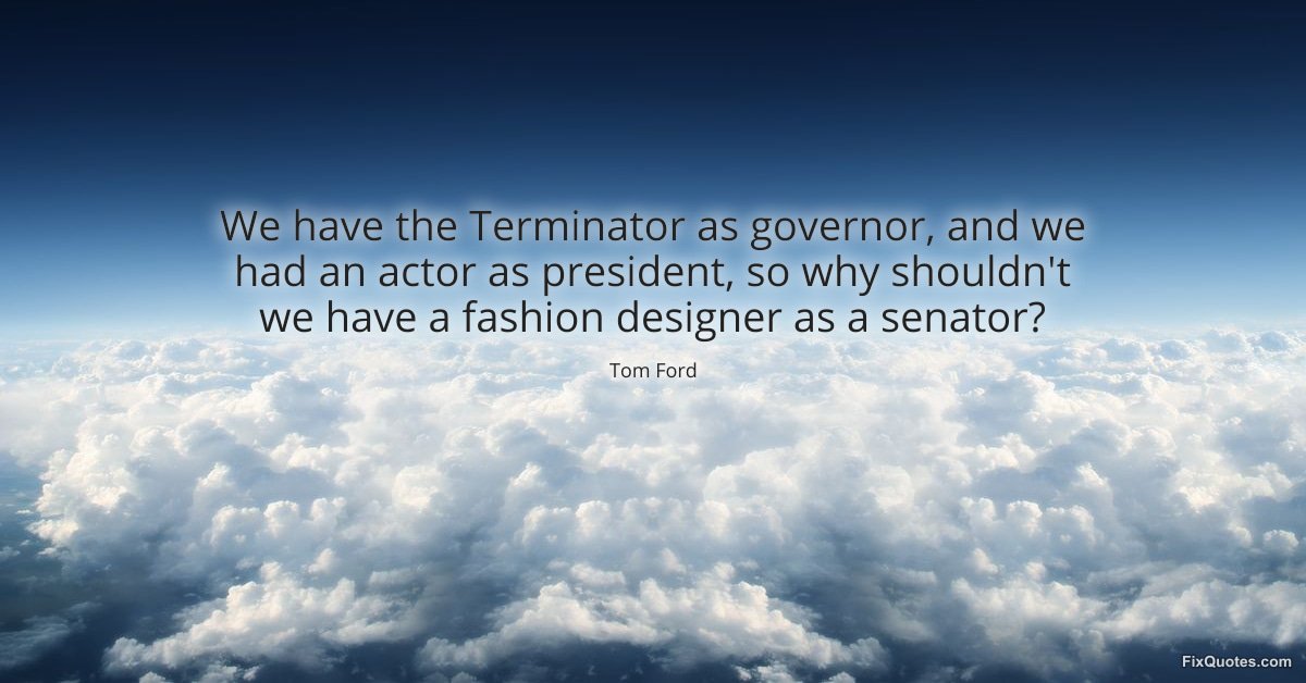 Ford, Tom. (2026, January 18). We have the Terminator as governor, and we had an actor as president, so why shouldn't we have a fashion designer as a senator? FixQuotes. https://fixquotes.com/quotes/we-have-the-terminator-as-governor-and-we-had-an-23297/