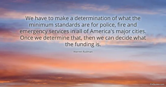 Rudman, Warren. (2026, January 15). We have to make a determination of what the minimum standards are for police, fire and emergency services in all of America's major cities. Once we determine that, then we can decide what the funding is. FixQuotes. https://fixquotes.com/quotes/we-have-to-make-a-determination-of-what-the-161739/