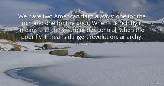 Miller, Henry. (2026, January 17). We have two American flags always: one for the rich and one for the poor. When the rich fly it means that things are under control; when the poor fly it means danger, revolution, anarchy. FixQuotes. https://fixquotes.com/quotes/we-have-two-american-flags-always-one-for-the-34517/