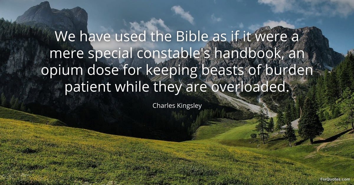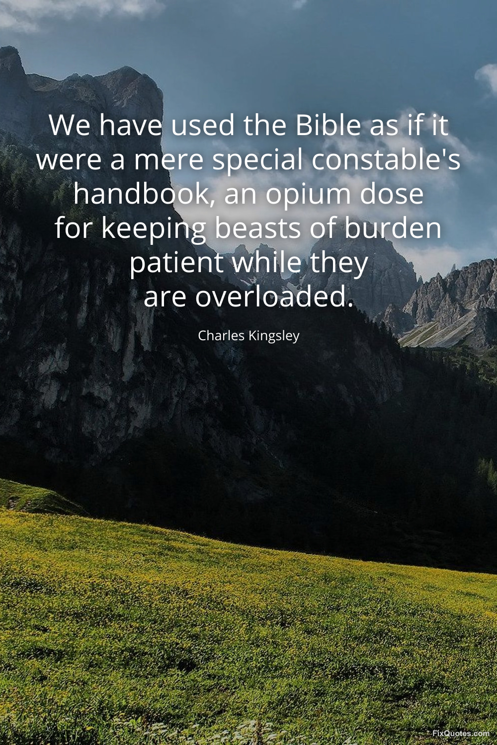 Kingsley, Charles. (2026, January 17). We have used the Bible as if it were a mere special constable's handbook, an opium dose for keeping beasts of burden patient while they are overloaded. FixQuotes. https://fixquotes.com/quotes/we-have-used-the-bible-as-if-it-were-a-mere-50928/