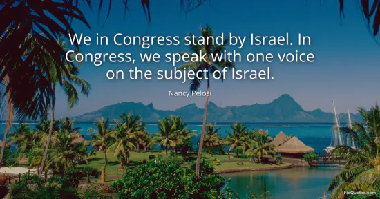 Pelosi, Nancy. (2026, January 18). We in Congress stand by Israel. In Congress, we speak with one voice on the subject of Israel. FixQuotes. https://fixquotes.com/quotes/we-in-congress-stand-by-israel-in-congress-we-20593/