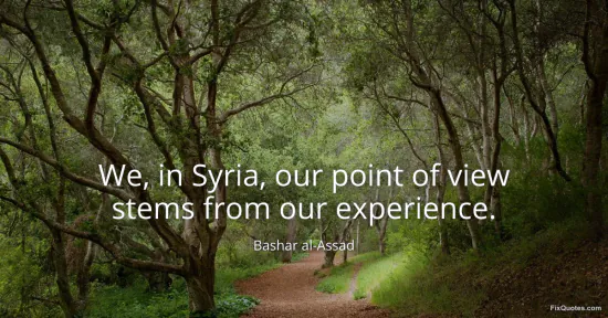 al-Assad, Bashar. "We, in Syria, our point of view stems from our experience." FixQuotes. January 17, 2026. https://fixquotes.com/quotes/we-in-syria-our-point-of-view-stems-from-our-38569/.