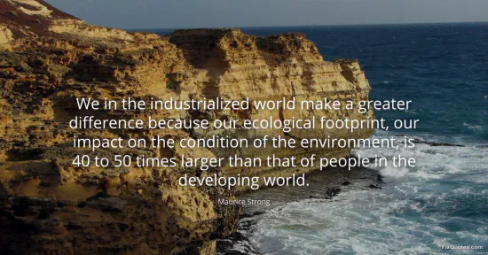 Strong, Maurice. "We in the industrialized world make a greater difference because our ecological footprint, our impact on the condition of the environment, is 40 to 50 times larger than that of people in the developing world." FixQuotes. January 17, 2026. https://fixquotes.com/quotes/we-in-the-industrialized-world-make-a-greater-78305/.