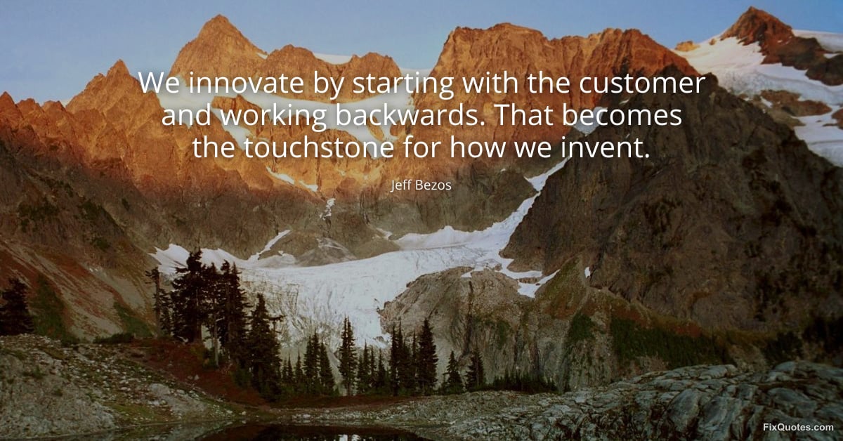 Bezos, Jeff. "We innovate by starting with the customer and working backwards. That becomes the touchstone for how we invent." FixQuotes. March 25, 2026. https://fixquotes.com/quotes/we-innovate-by-starting-with-the-customer-and-186350/.