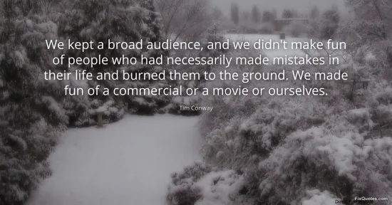 Conway, Tim. "We kept a broad audience, and we didn't make fun of people who had necessarily made mistakes in their life and burned them to the ground. We made fun of a commercial or a movie or ourselves." FixQuotes. January 16, 2026. https://fixquotes.com/quotes/we-kept-a-broad-audience-and-we-didnt-make-fun-of-99591/.
