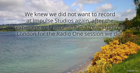 Gallagher, John. "We knew we did not want to record at Impulse Studios again, after the experience of recording in a 'real' studio in London for the Radio One session we did." FixQuotes. January 16, 2026. https://fixquotes.com/quotes/we-knew-we-did-not-want-to-record-at-impulse-117790/.