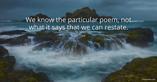Tate, Allen. (2026, January 17). We know the particular poem, not what it says that we can restate. FixQuotes. https://fixquotes.com/quotes/we-know-the-particular-poem-not-what-it-says-that-35851/