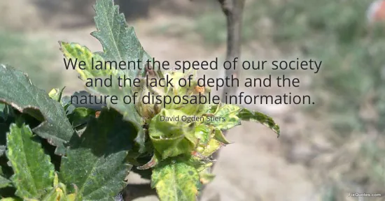 Stiers, David Ogden. (2026, January 16). We lament the speed of our society and the lack of depth and the nature of disposable information. FixQuotes. https://fixquotes.com/quotes/we-lament-the-speed-of-our-society-and-the-lack-135030/