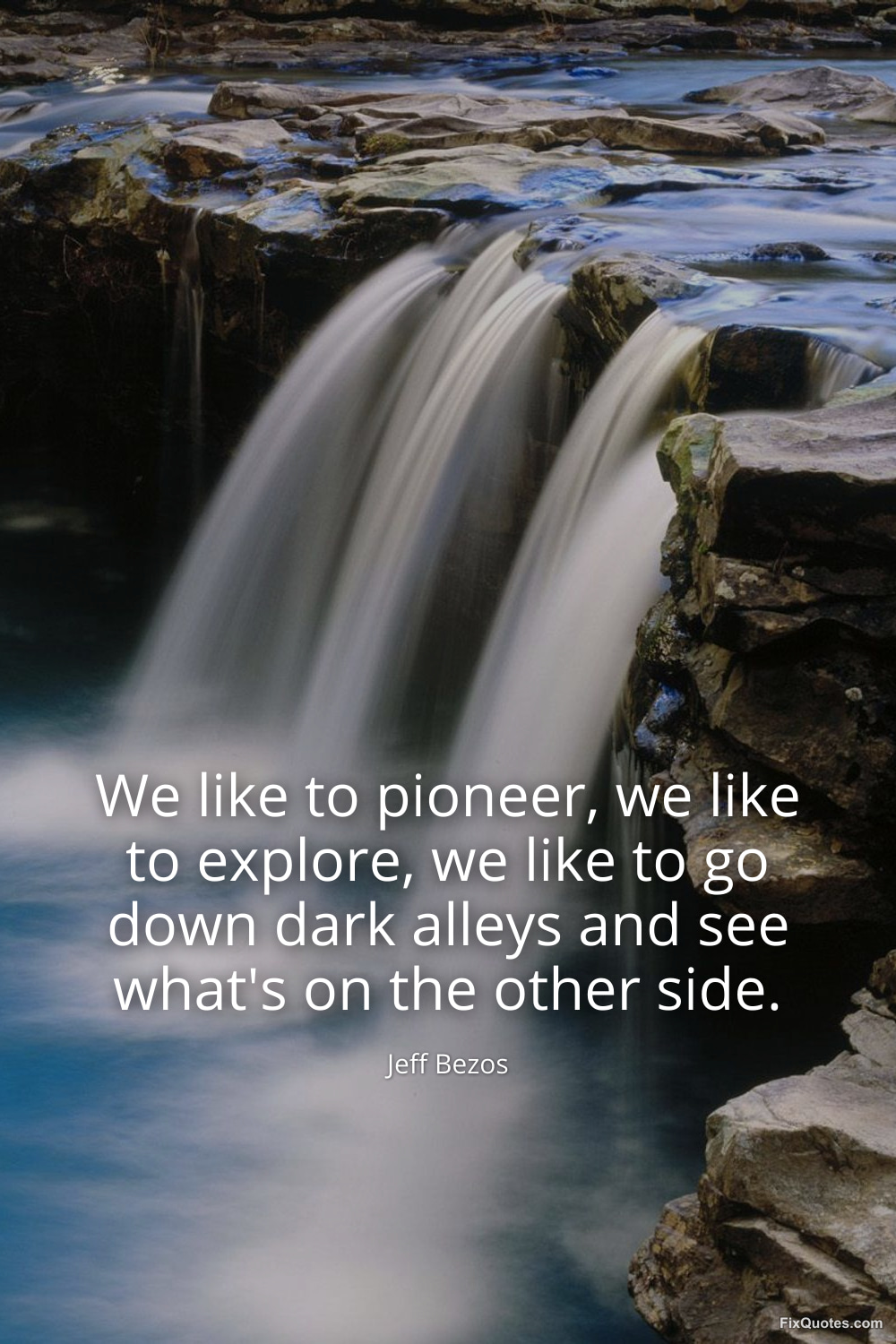 Bezos, Jeff. "We like to pioneer, we like to explore, we like to go down dark alleys and see what's on the other side." FixQuotes. March 25, 2026. https://fixquotes.com/quotes/we-like-to-pioneer-we-like-to-explore-we-like-to-186374/.