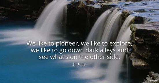 Bezos, Jeff. (2026, March 25). We like to pioneer, we like to explore, we like to go down dark alleys and see what's on the other side. FixQuotes. https://fixquotes.com/quotes/we-like-to-pioneer-we-like-to-explore-we-like-to-186374/
