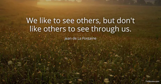 Fontaine, Jean de La. (2026, January 17). We like to see others, but don't like others to see through us. FixQuotes. https://fixquotes.com/quotes/we-like-to-see-others-but-dont-like-others-to-see-56061/