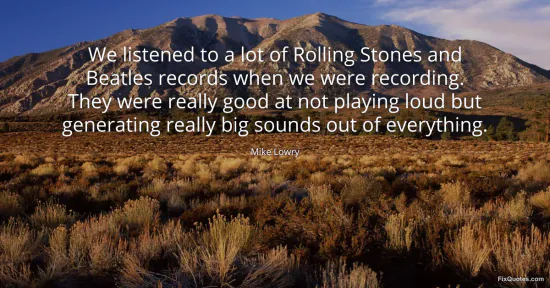 Lowry, Mike. "We listened to a lot of Rolling Stones and Beatles records when we were recording. They were really good at not playing loud but generating really big sounds out of everything." FixQuotes. February 17, 2026. https://fixquotes.com/quotes/we-listened-to-a-lot-of-rolling-stones-and-108430/.
