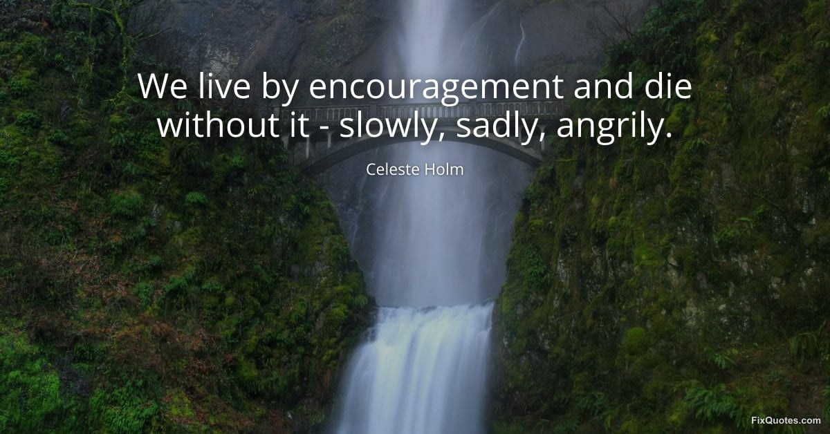 Holm, Celeste. (2026, January 15). We live by encouragement and die without it - slowly, sadly, angrily. FixQuotes. https://fixquotes.com/quotes/we-live-by-encouragement-and-die-without-it-124679/