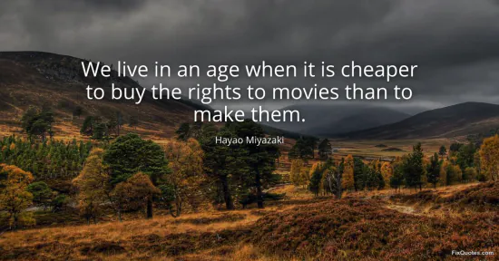 Miyazaki, Hayao. (2026, January 15). We live in an age when it is cheaper to buy the rights to movies than to make them. FixQuotes. https://fixquotes.com/quotes/we-live-in-an-age-when-it-is-cheaper-to-buy-the-143949/