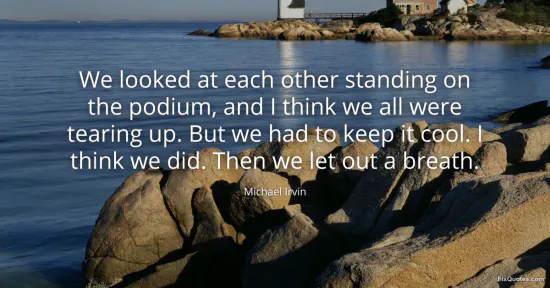 Irvin, Michael. "We looked at each other standing on the podium, and I think we all were tearing up. But we had to keep it cool. I think we did. Then we let out a breath." FixQuotes. January 17, 2026. https://fixquotes.com/quotes/we-looked-at-each-other-standing-on-the-podium-78320/.