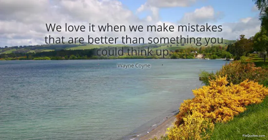 Coyne, Wayne. (2026, January 15). We love it when we make mistakes that are better than something you could think up. FixQuotes. https://fixquotes.com/quotes/we-love-it-when-we-make-mistakes-that-are-better-166823/