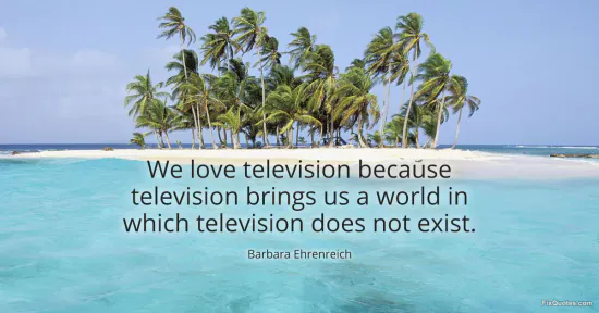 Ehrenreich, Barbara. (2026, January 15). We love television because television brings us a world in which television does not exist. FixQuotes. https://fixquotes.com/quotes/we-love-television-because-television-brings-us-a-161757/