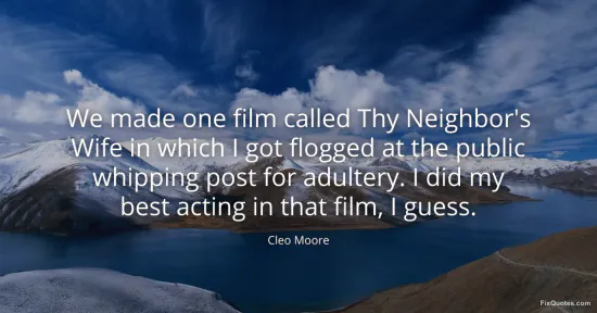 Moore, Cleo. "We made one film called Thy Neighbor's Wife in which I got flogged at the public whipping post for adultery. I did my best acting in that film, I guess." FixQuotes. January 14, 2026. https://fixquotes.com/quotes/we-made-one-film-called-thy-neighbors-wife-in-136119/.