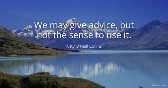 Collins, Kitty O'Neill. "We may give advice, but not the sense to use it." FixQuotes. January 16, 2026. https://fixquotes.com/quotes/we-may-give-advice-but-not-the-sense-to-use-it-133444/.
