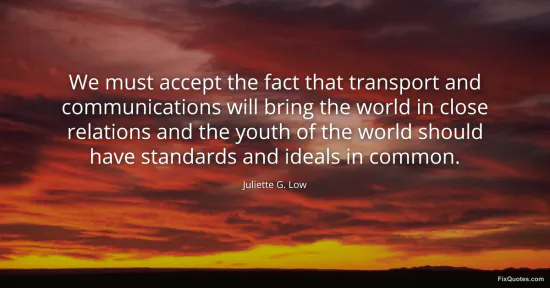 Low, Juliette G. (2026, January 15). We must accept the fact that transport and communications will bring the world in close relations and the youth of the world should have standards and ideals in common. FixQuotes. https://fixquotes.com/quotes/we-must-accept-the-fact-that-transport-and-162547/