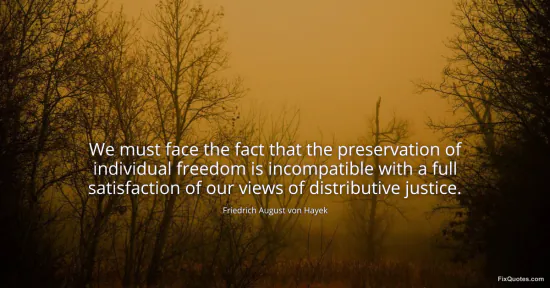Hayek, Friedrich August von. "We must face the fact that the preservation of individual freedom is incompatible with a full satisfaction of our views of distributive justice." FixQuotes. January 18, 2026. https://fixquotes.com/quotes/we-must-face-the-fact-that-the-preservation-of-11307/.