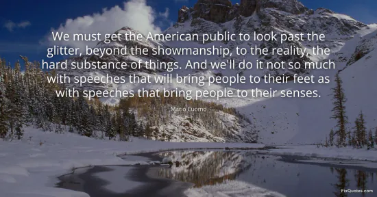 Cuomo, Mario. (2026, January 17). We must get the American public to look past the glitter, beyond the showmanship, to the reality, the hard substance of things. And we'll do it not so much with speeches that will bring people to their feet as with speeches that bring people to their senses. FixQuotes. https://fixquotes.com/quotes/we-must-get-the-american-public-to-look-past-the-25661/