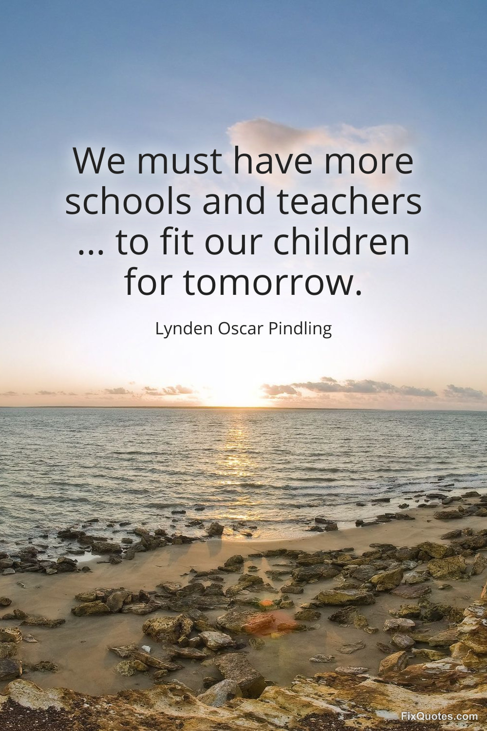 "We must have more schools and teachers ... to fit our children for tomorrow." FixQuotes, 16 Feb. 2026, https://fixquotes.com/quotes/we-must-have-more-schools-and-teachers-to-fit-185528/. Accessed 17 Feb. 2026.