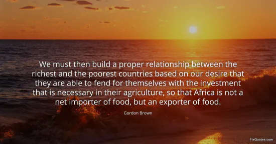 Brown, Gordon. (2026, January 17). We must then build a proper relationship between the richest and the poorest countries based on our desire that they are able to fend for themselves with the investment that is necessary in their agriculture, so that Africa is not a net importer of food, but an exporter of food. FixQuotes. https://fixquotes.com/quotes/we-must-then-build-a-proper-relationship-between-66472/
