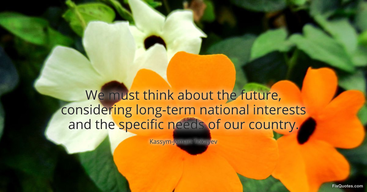 Tokayev, Kassym-Jomart. (2026, February 16). We must think about the future, considering long-term national interests and the specific needs of our country. FixQuotes. https://fixquotes.com/quotes/we-must-think-about-the-future-considering-185536/