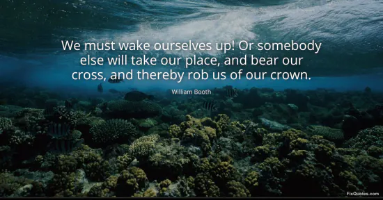 Booth, William. "We must wake ourselves up! Or somebody else will take our place, and bear our cross, and thereby rob us of our crown." FixQuotes. January 16, 2026. https://fixquotes.com/quotes/we-must-wake-ourselves-up-or-somebody-else-will-108255/.
